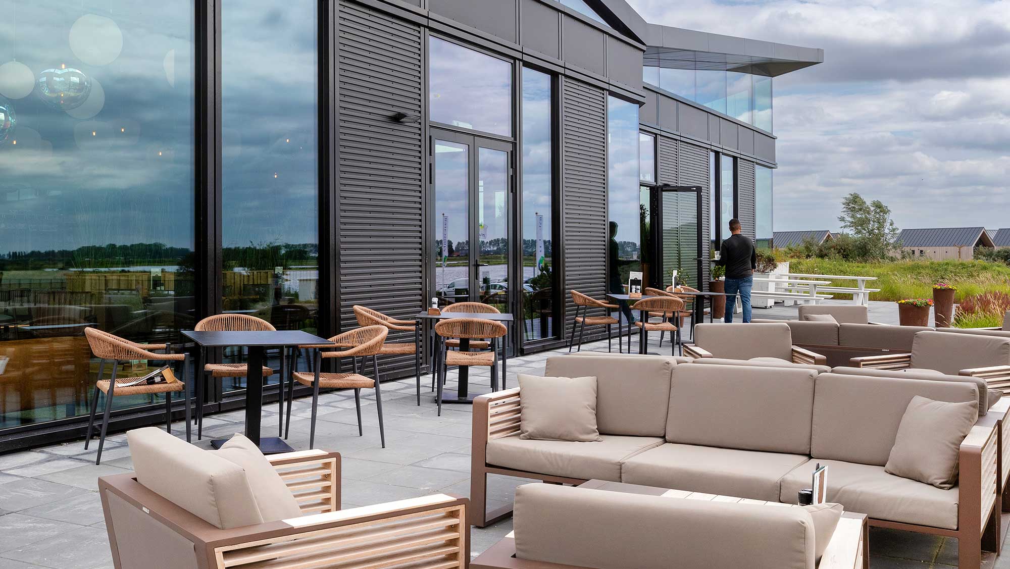Zowel buiten op het terras met parasol en windscherm als ook binnen aan een knusse tafel geniet je bij ons van een lekker kopje koffie of thee, een verfrissend drankje, een smakelijke lunch of een uitgebreid diner. Of je nu fietsend of wandelend de omgeving verkent, of op Molecaten Park Waterdunen verblijft: je bent van harte welkom voor een welverdiende pauze.